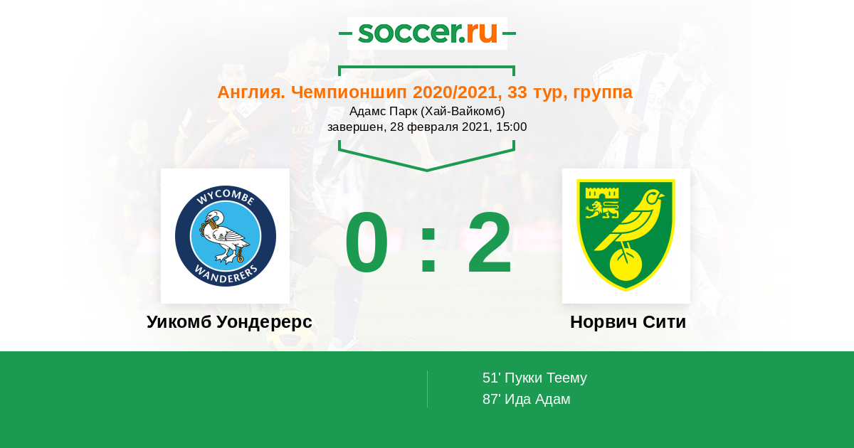 Протокол матча Уикомб Уондерерс против Норвич Сити