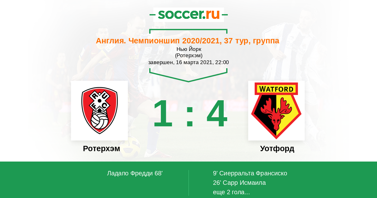 Протокол матча Ротерхэм против Уотфорд