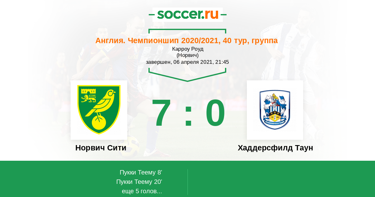 Протокол матча Норвич Сити против Хаддерсфилд Таун