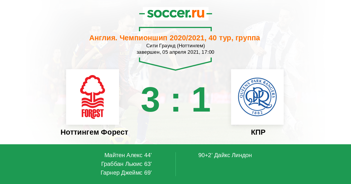 Протокол матча Ноттингем Форест против КПР
