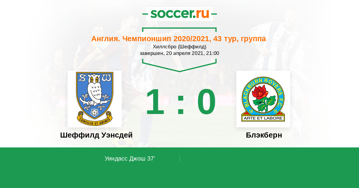 Протокол матча Шеффилд Уэнсдей против Блэкберн