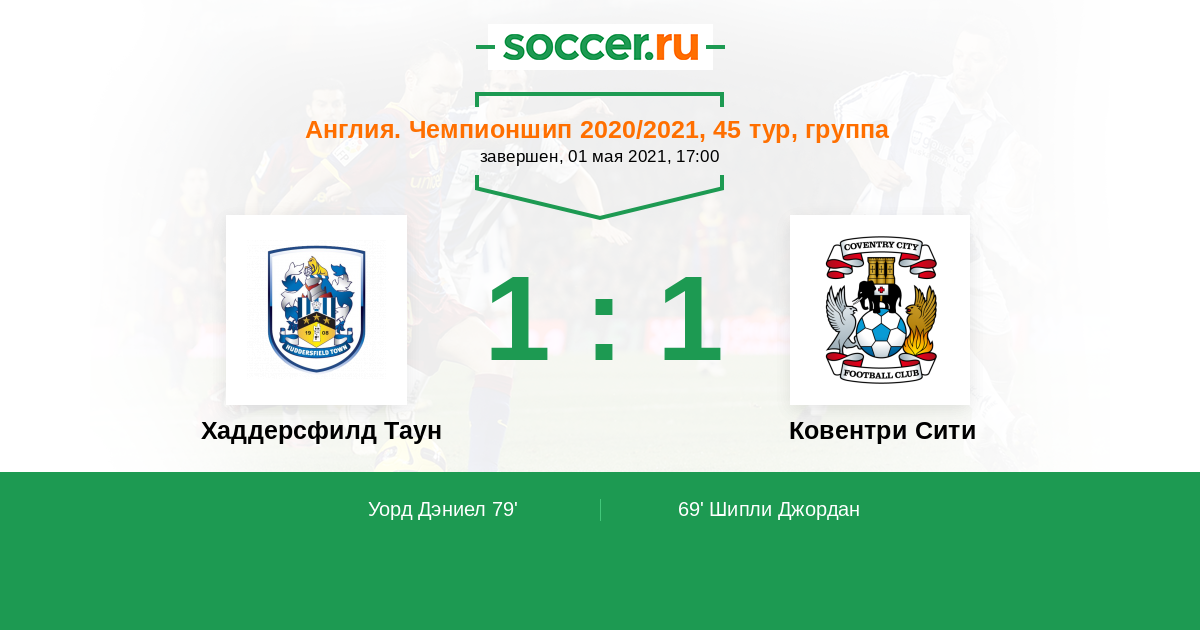 Протокол матча Хаддерсфилд Таун против Ковентри Сити