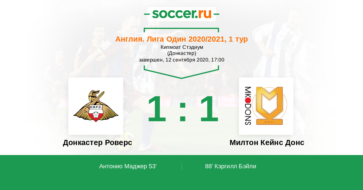 Протокол матча Донкастер Роверс против Милтон Кейнс Донс