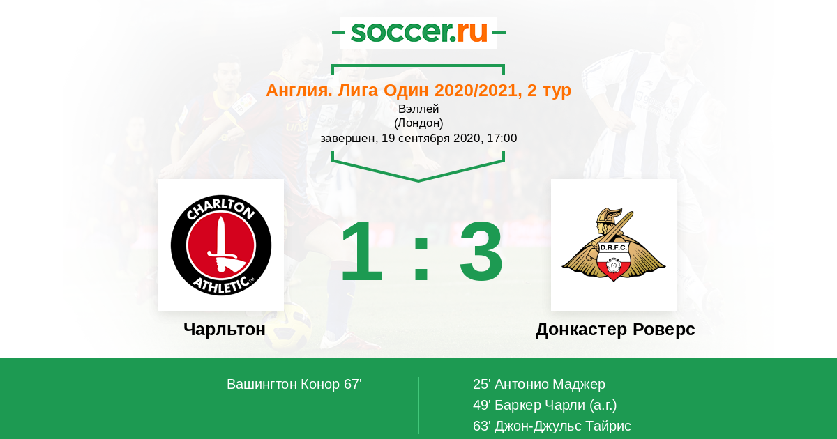 Протокол матча Чарльтон против Донкастер Роверс