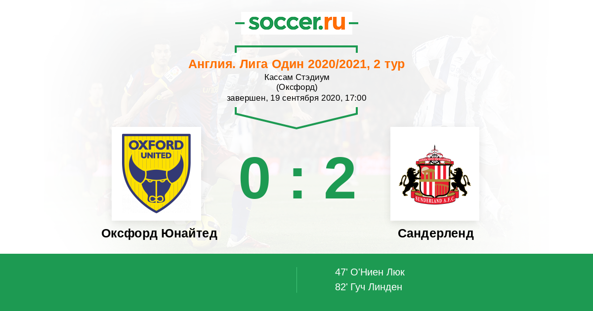 Протокол матча Оксфорд Юнайтед против Сандерленд
