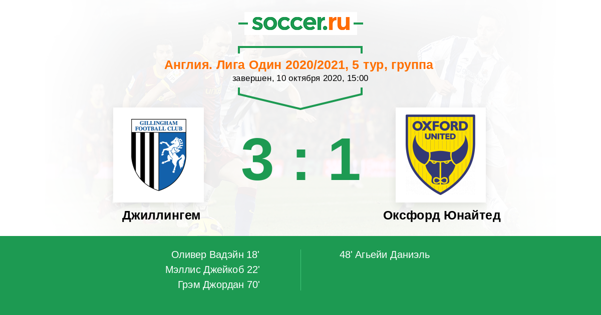 Протокол матча Джиллингем против Оксфорд Юнайтед