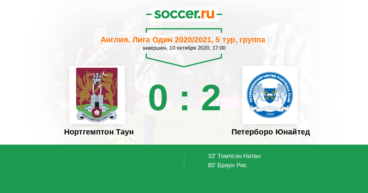 Протокол матча Нортгемптон Таун против Петерборо Юнайтед