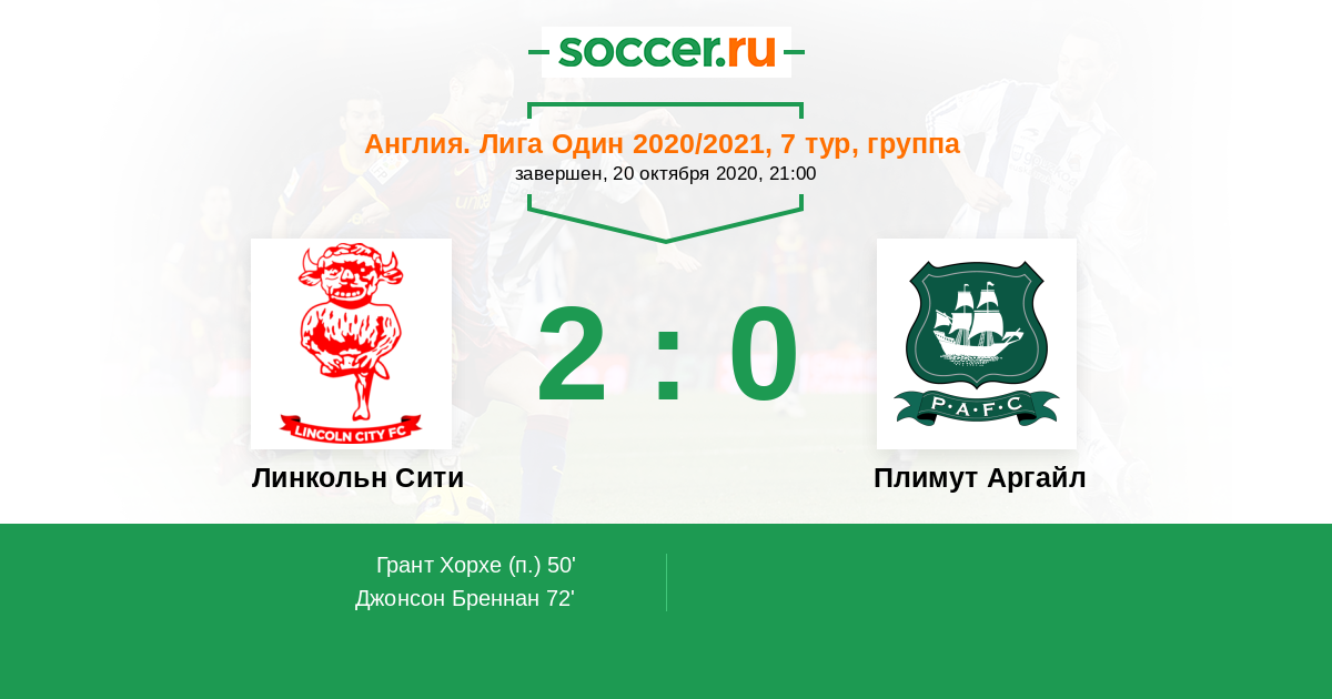 Протокол матча Линкольн Сити против Плимут Аргайл