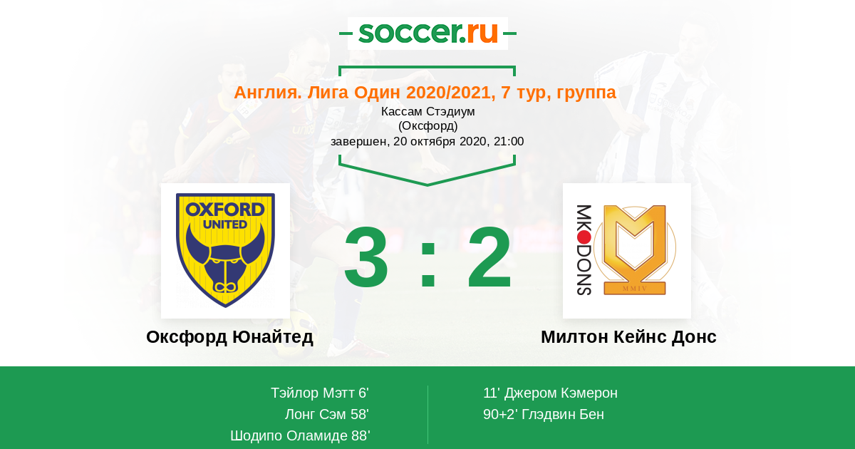 Протокол матча Оксфорд Юнайтед против Милтон Кейнс Донс