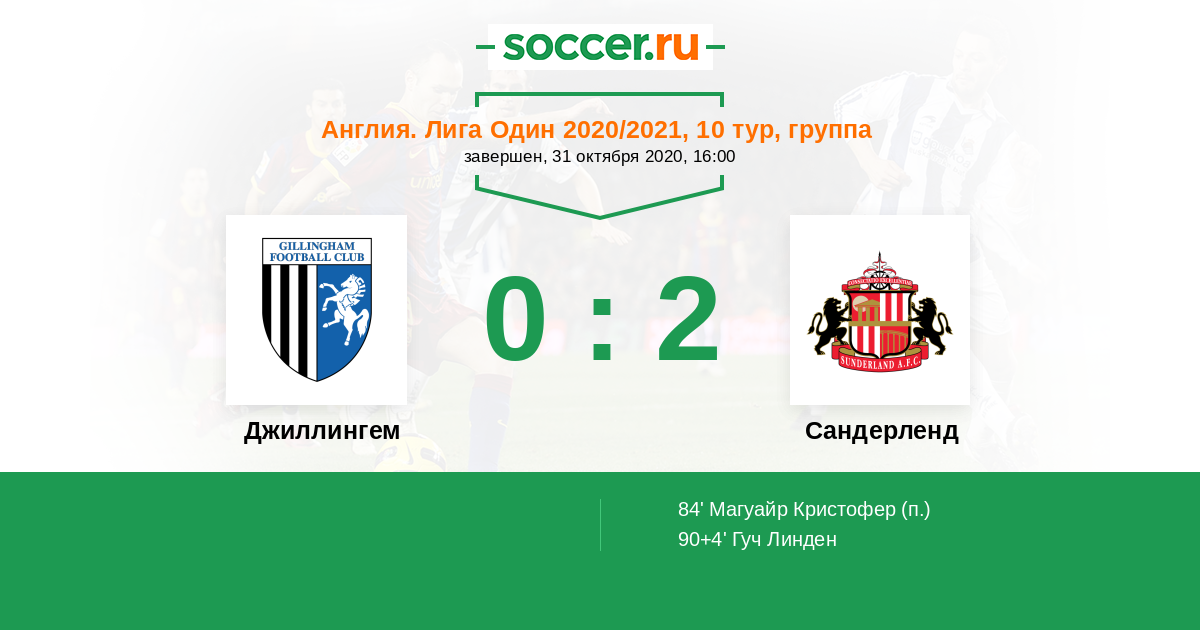 Протокол матча Джиллингем против Сандерленд