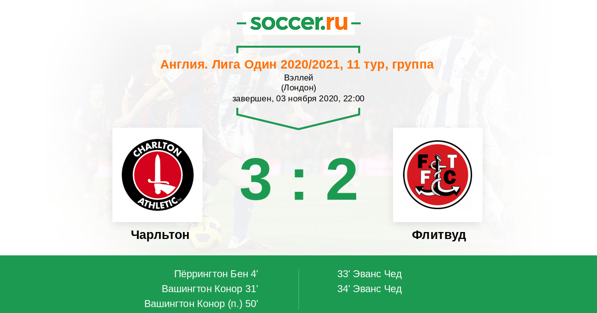 Протокол матча Чарльтон против Флитвуд