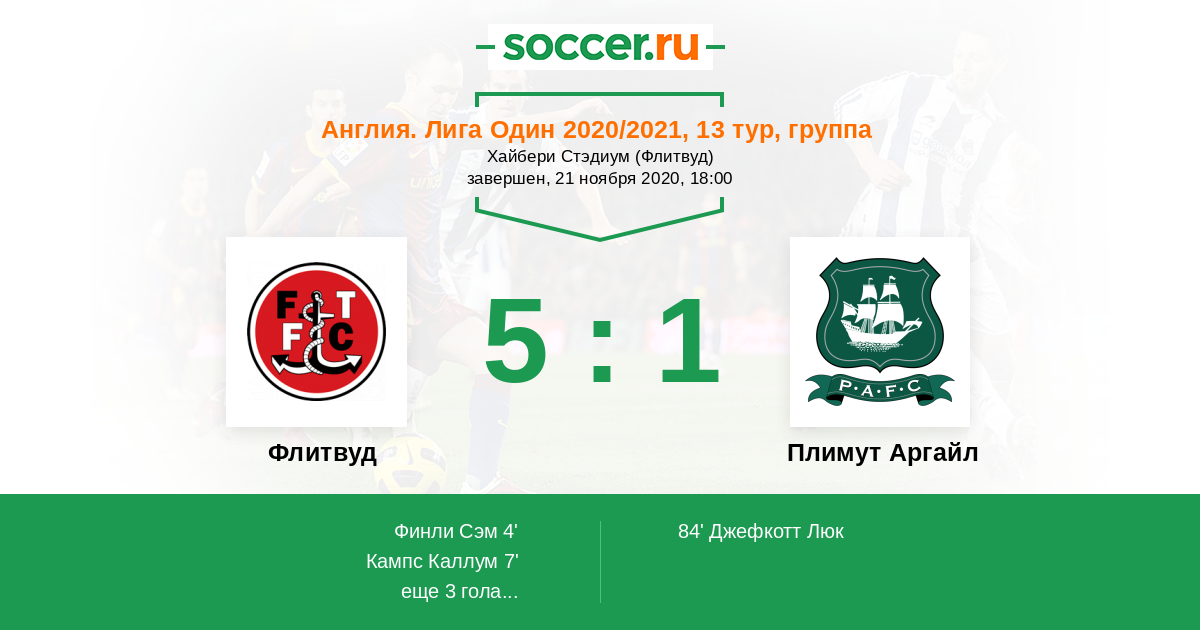Протокол матча Флитвуд против Плимут Аргайл