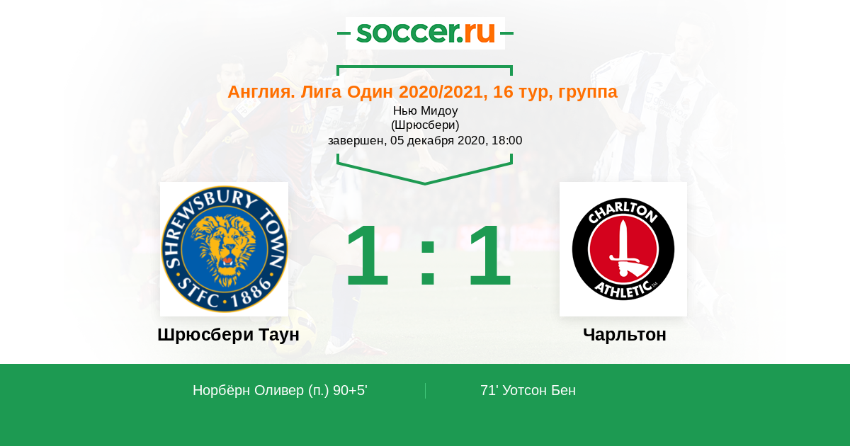 Протокол матча Шрюсбери Таун против Чарльтон