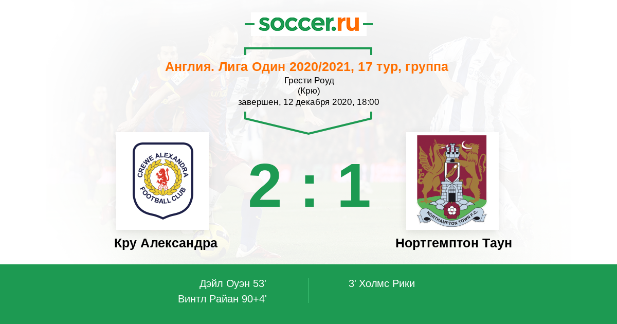 Протокол матча Кру Александра против Нортгемптон Таун