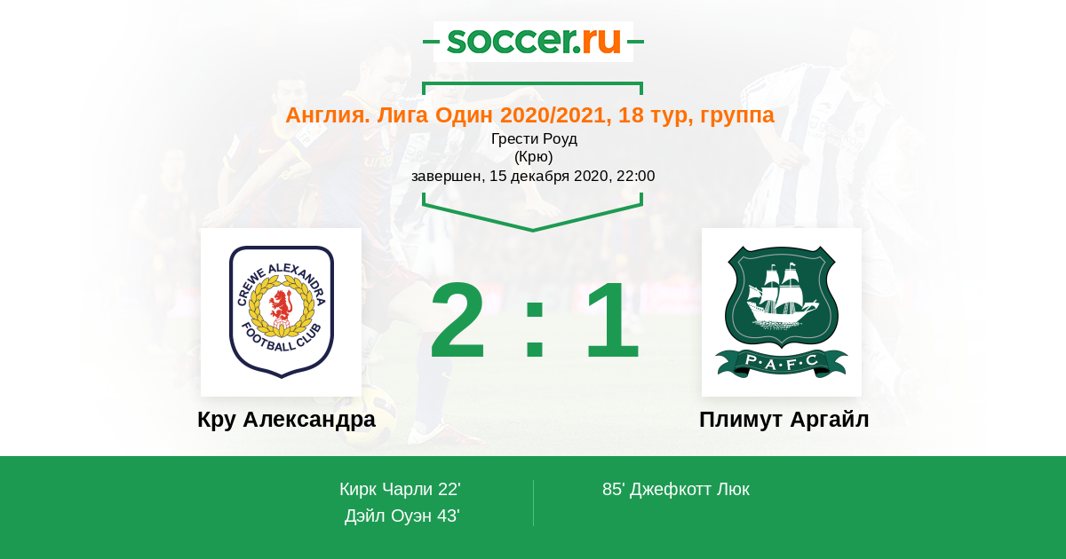 43' (2:0) Дэйл Оуэн (19) (Ловери Том (8))