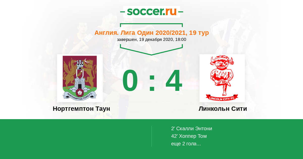 Протокол матча Нортгемптон Таун против Линкольн Сити