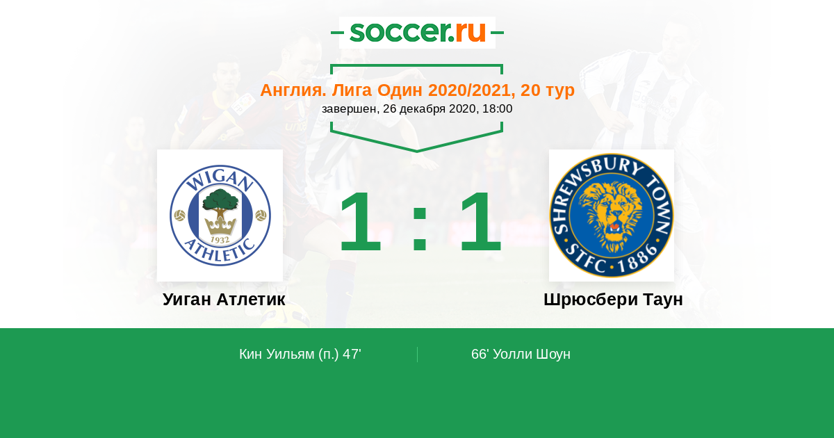 Протокол матча Уиган Атлетик против Шрюсбери Таун