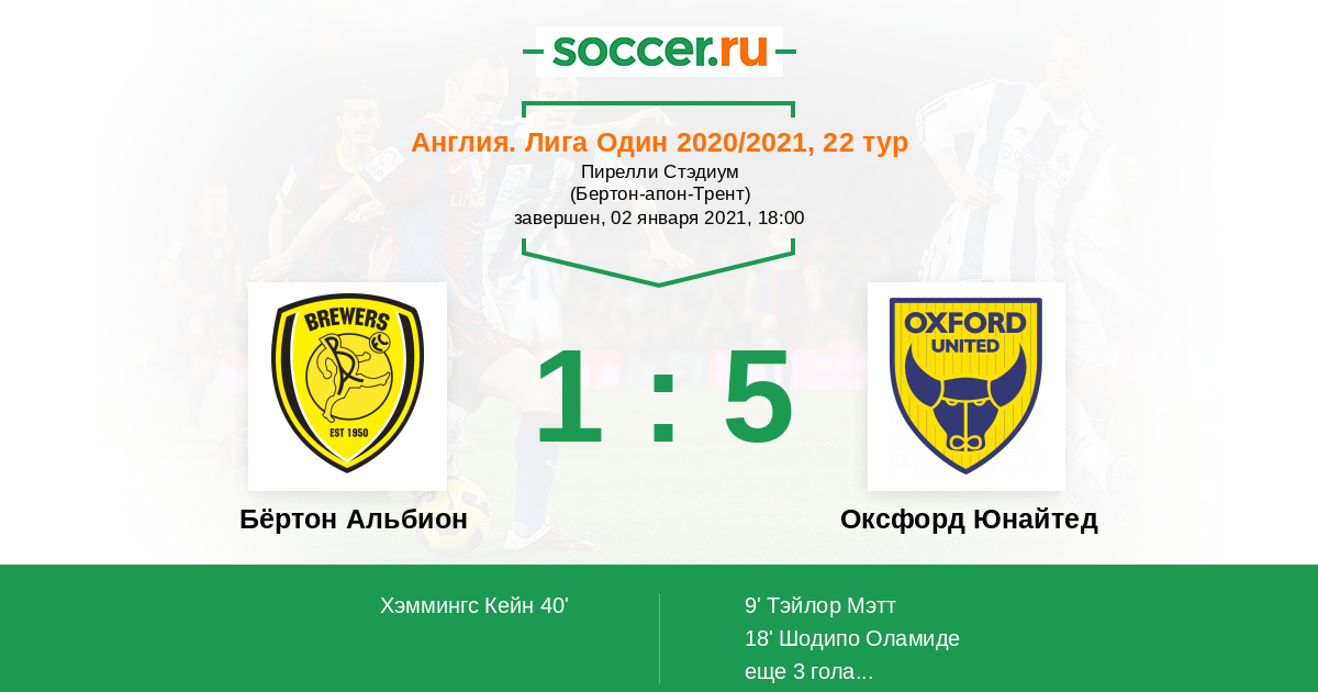 Протокол матча Бёртон Альбион против Оксфорд Юнайтед