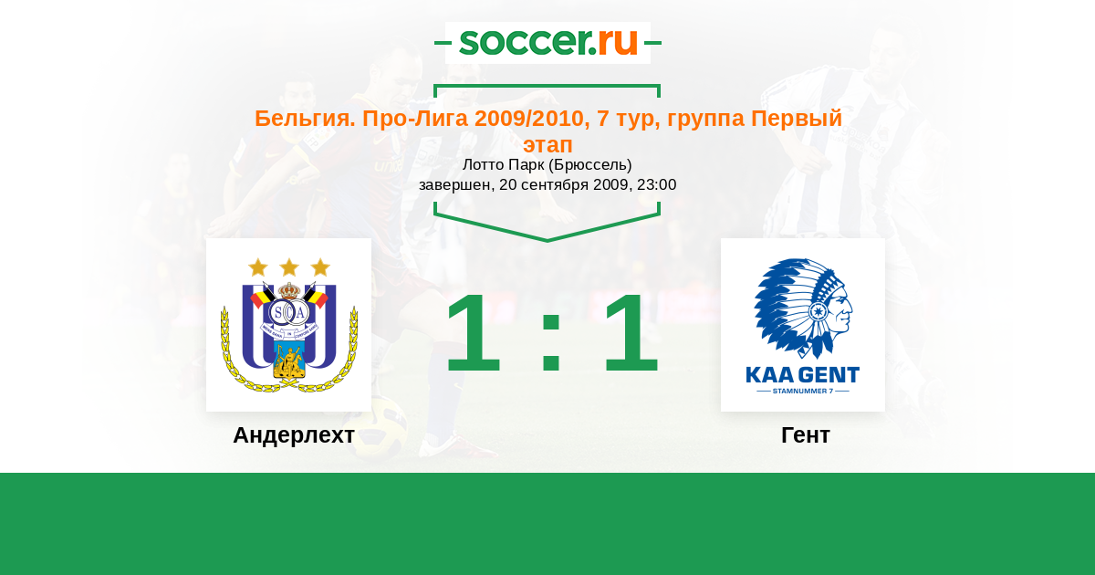 Бельгия. Про-Лига 20.04.2011 Гент Логотип футбольный клуб Гент 1:1 Логотип футбольный клуб Андерлехт (Брюссель) Андерлехт