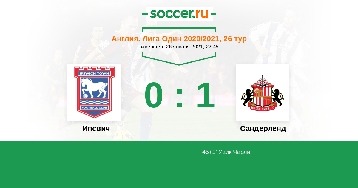 45+1' (0:1) Уайк Чарли (9) (Пауэр Макс (6))