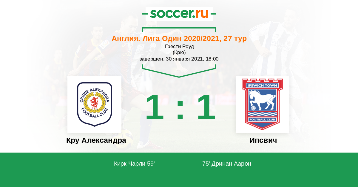 Протокол матча Кру Александра против Ипсвич