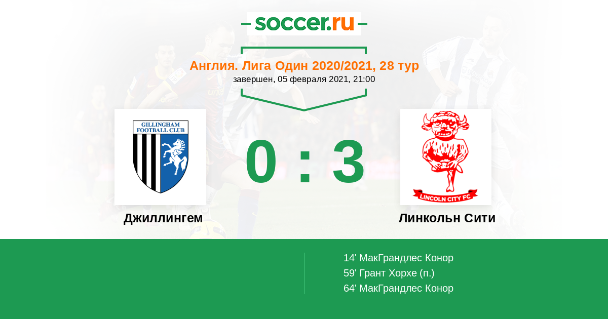 Протокол матча Джиллингем против Линкольн Сити