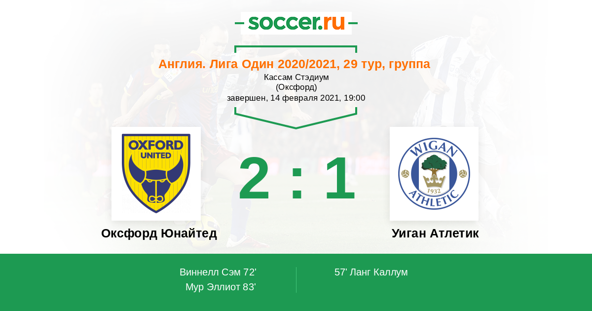 Протокол матча Оксфорд Юнайтед против Уиган Атлетик