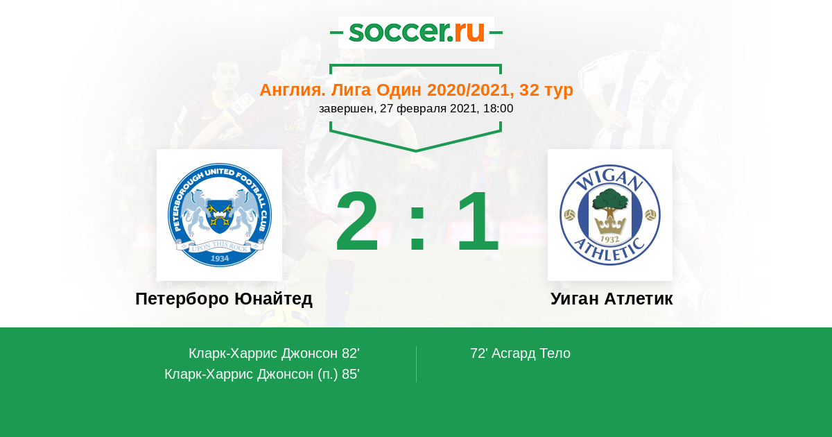 Протокол матча Петерборо Юнайтед против Уиган Атлетик