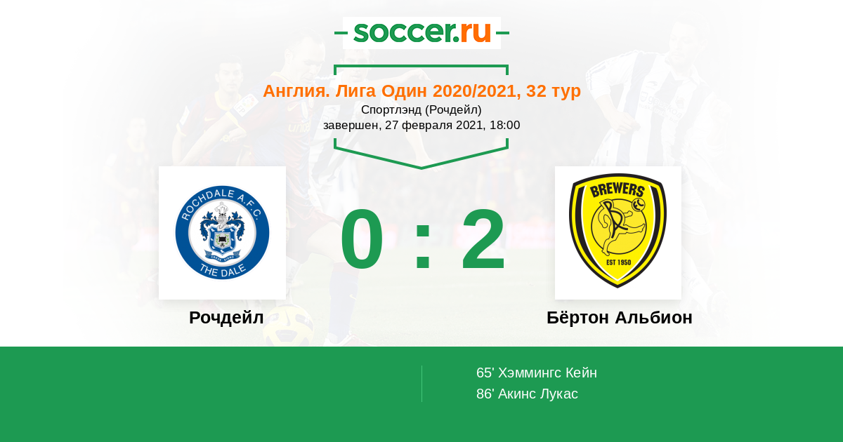 Протокол матча Рочдейл против Бёртон Альбион