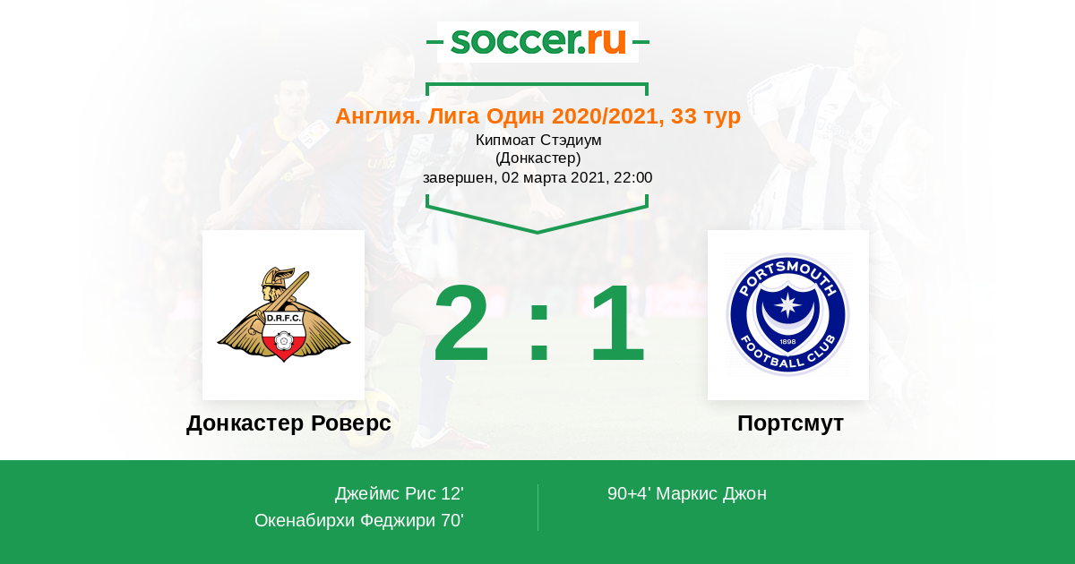 Протокол матча Донкастер Роверс против Портсмут