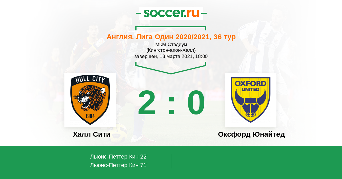 Протокол матча Халл Сити против Оксфорд Юнайтед