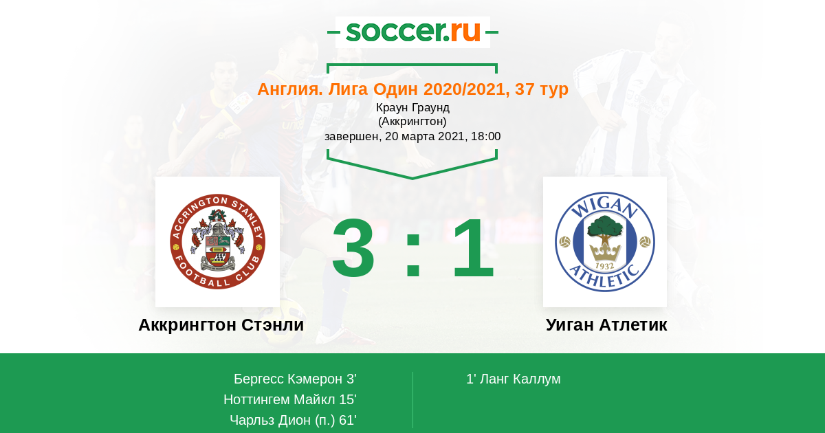 Протокол матча Аккрингтон Стэнли против Уиган Атлетик