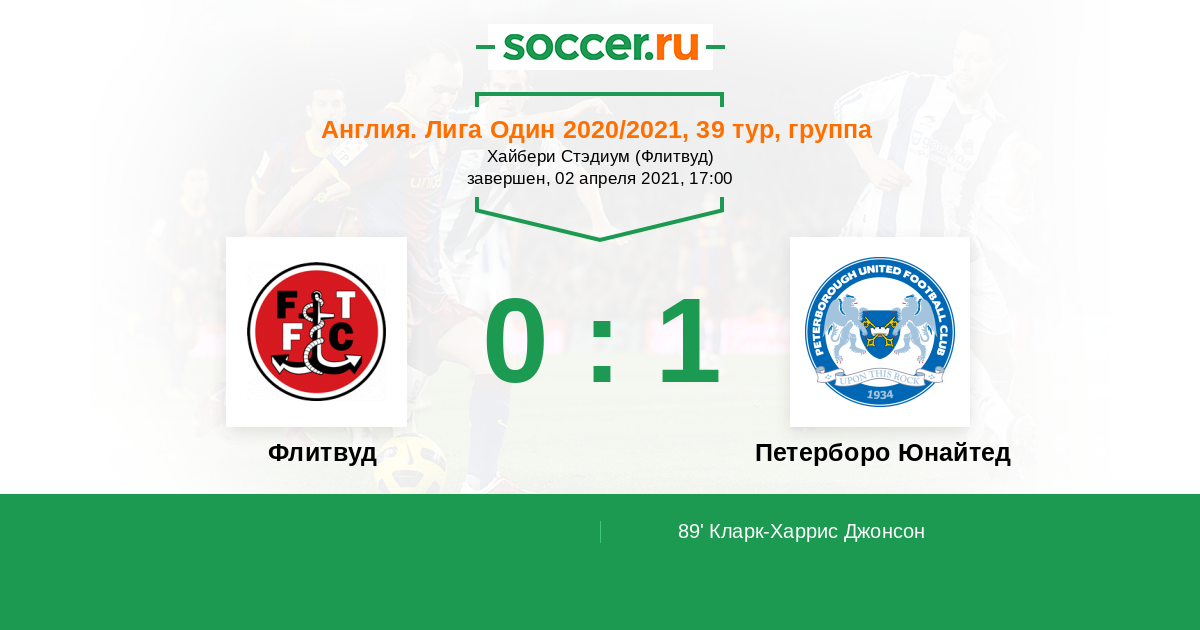 Протокол матча Флитвуд против Петерборо Юнайтед