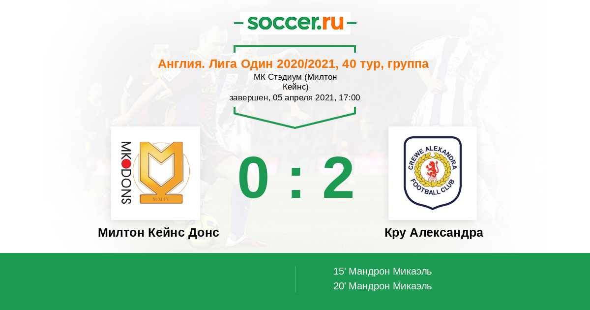 Протокол матча Милтон Кейнс Донс против Кру Александра