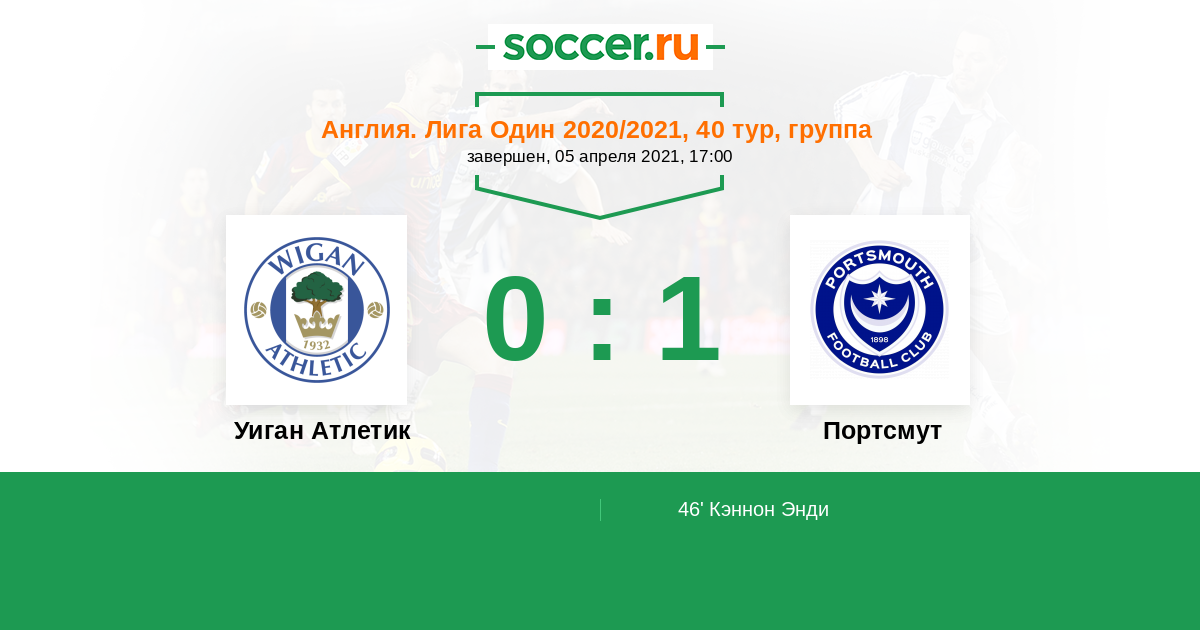 Протокол матча Уиган Атлетик против Портсмут