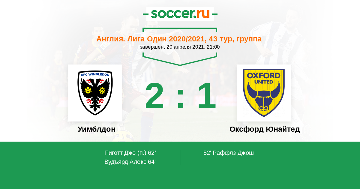 Протокол матча Уимблдон против Оксфорд Юнайтед