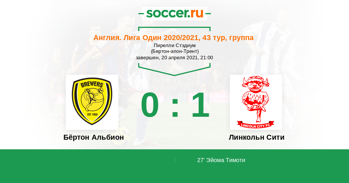 Протокол матча Бёртон Альбион против Линкольн Сити
