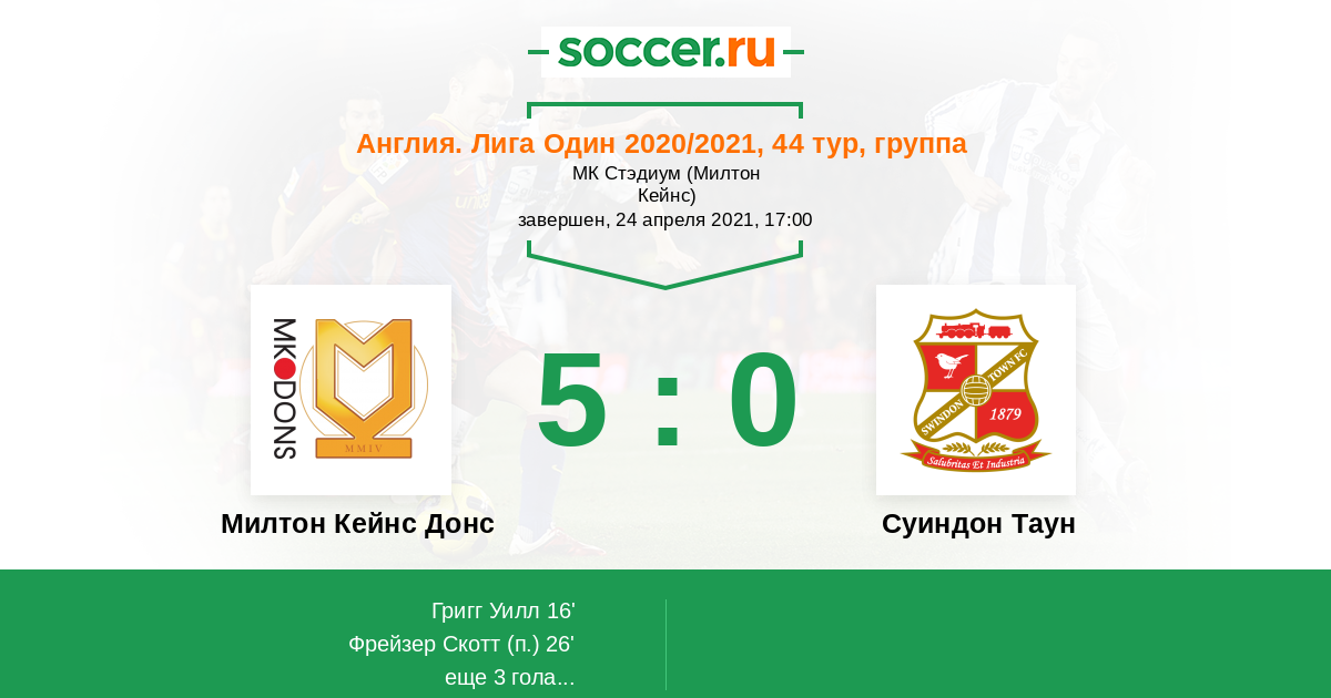 Протокол матча Милтон Кейнс Донс против Суиндон Таун