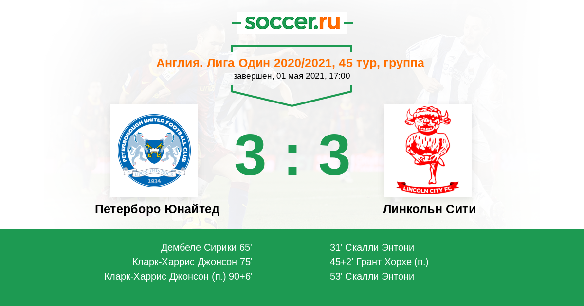 Протокол матча Петерборо Юнайтед против Линкольн Сити