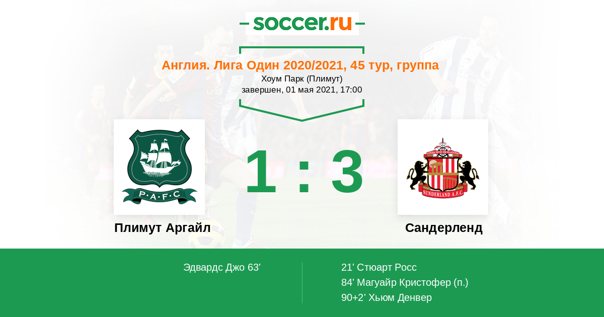 Протокол матча Плимут Аргайл против Сандерленд