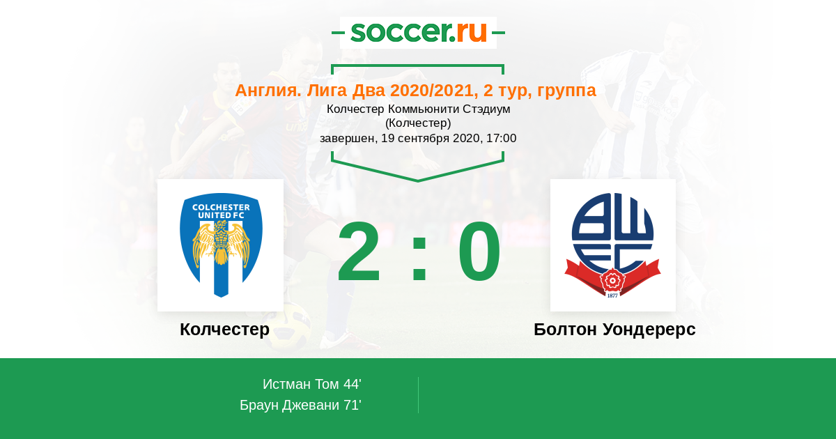 Протокол матча Колчестер против Болтон Уондерерс