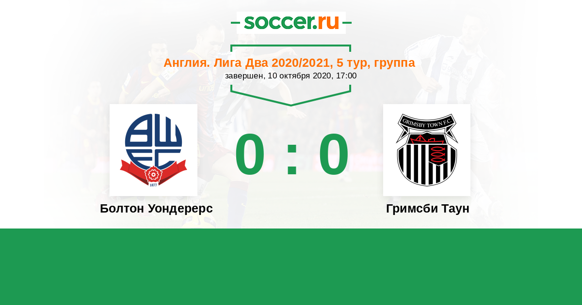 Протокол матча Болтон Уондерерс против Гримсби Таун