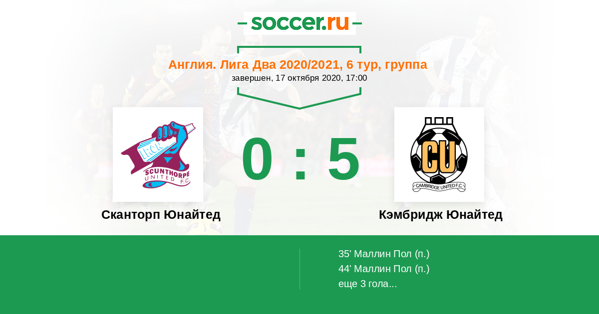 Протокол матча Сканторп Юнайтед против Кэмбридж Юнайтед