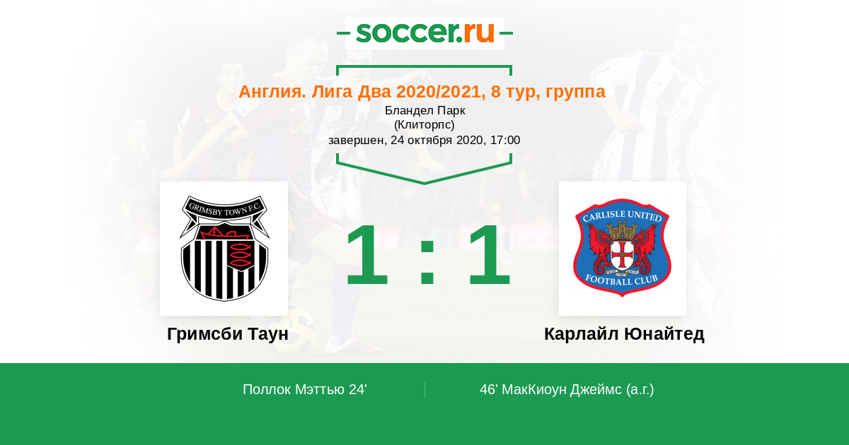 Протокол матча Гримсби Таун против Карлайл Юнайтед
