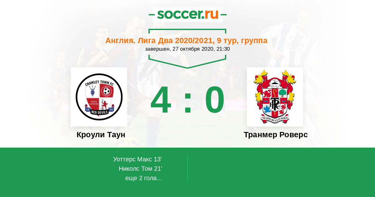 21' (2:0) Николс Том (16) (Хескет Джейк (29))