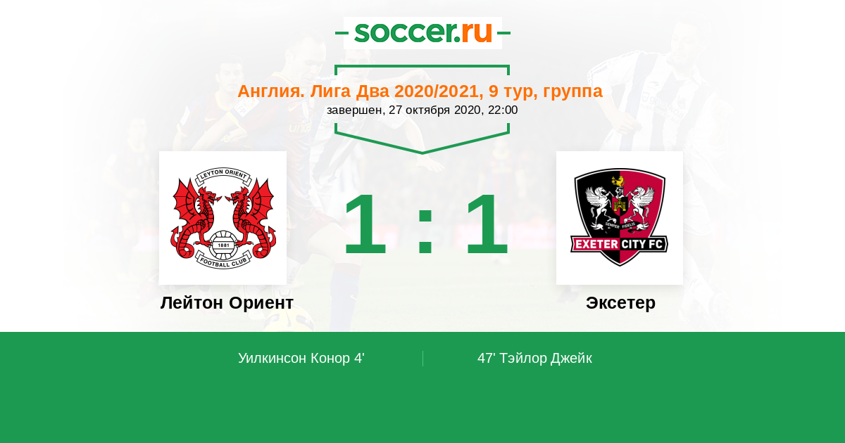 Протокол матча Лейтон Ориент против Эксетер