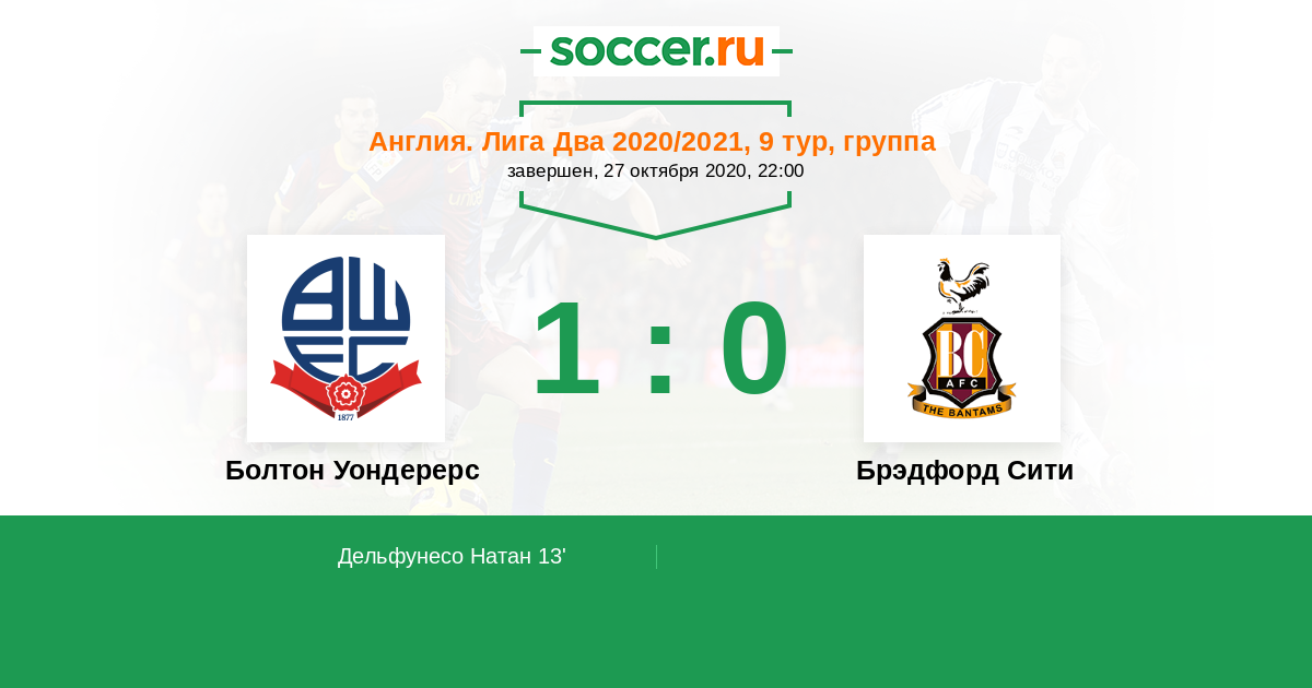 Протокол матча Болтон Уондерерс против Брэдфорд Сити