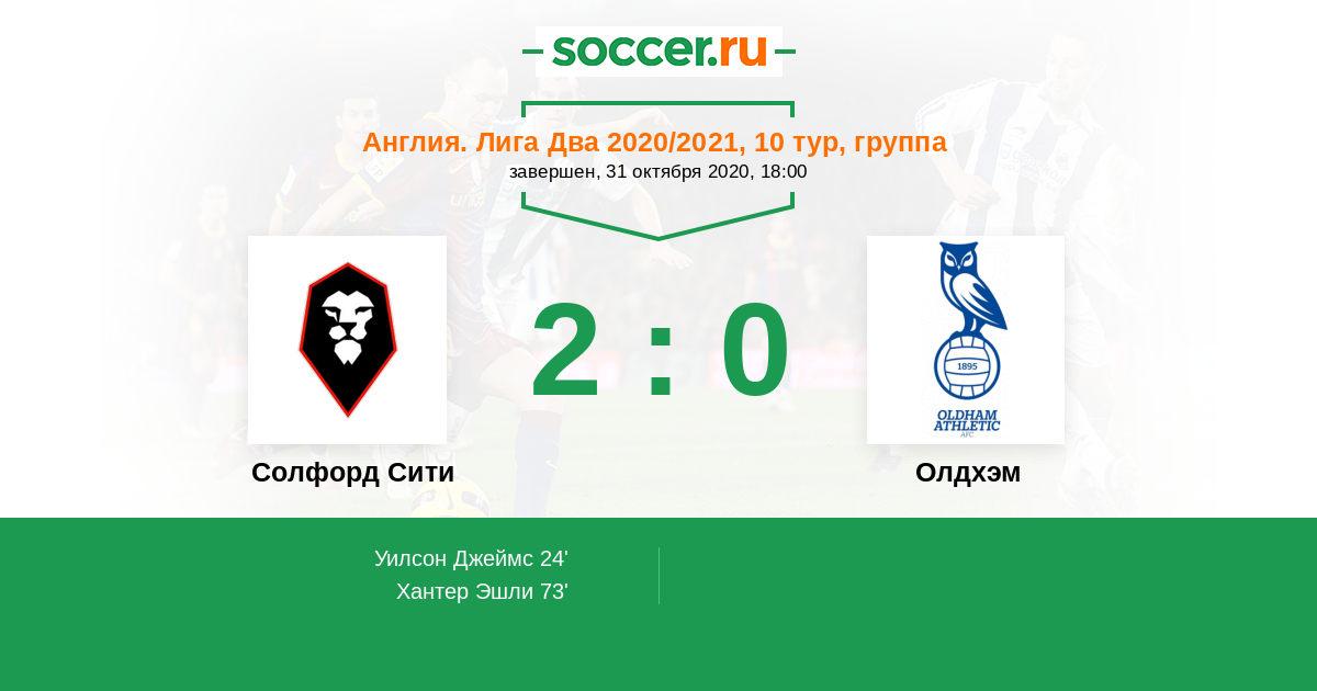 Протокол матча Солфорд Сити против Олдхэм