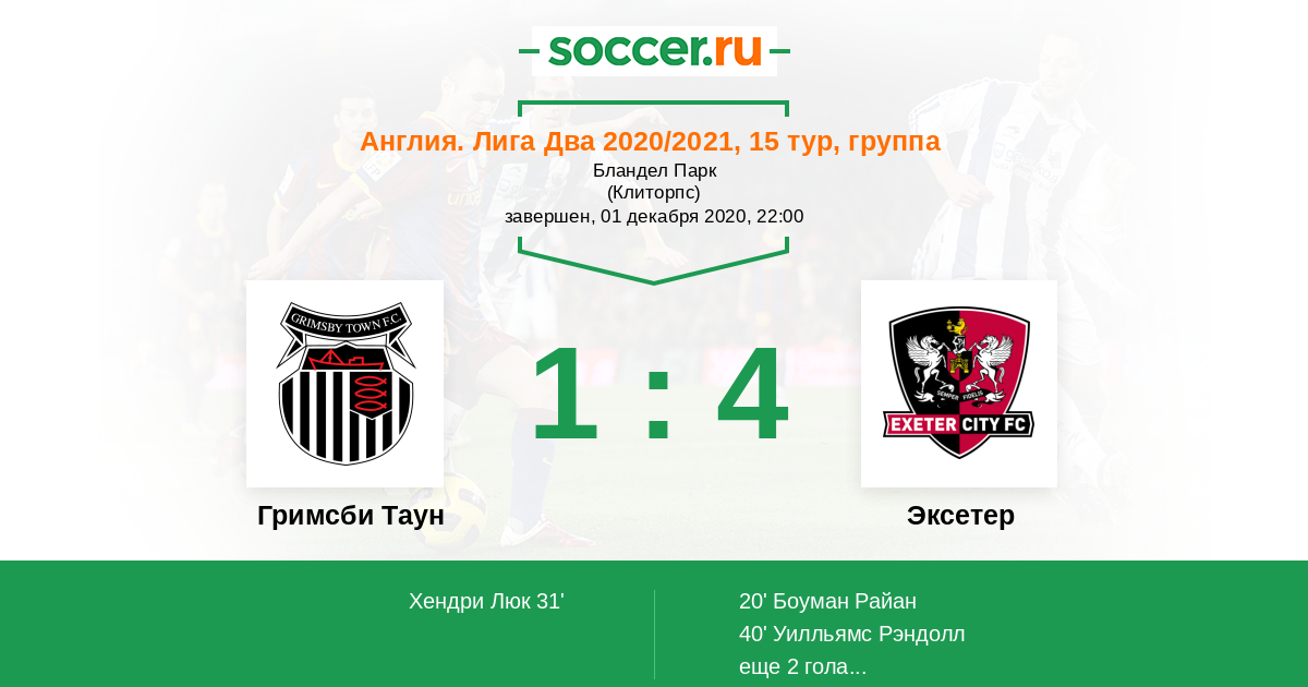Протокол матча Гримсби Таун против Эксетер