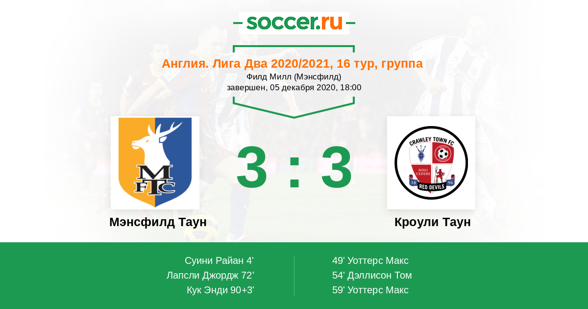 Протокол матча Мэнсфилд Таун против Кроули Таун